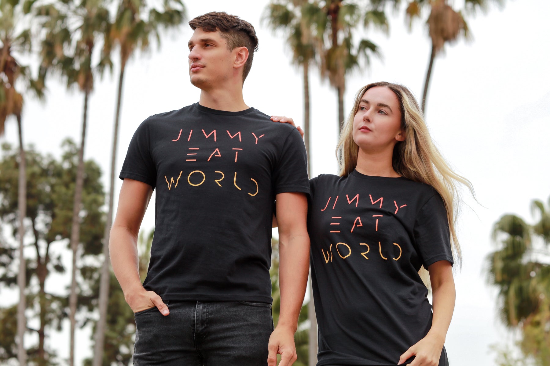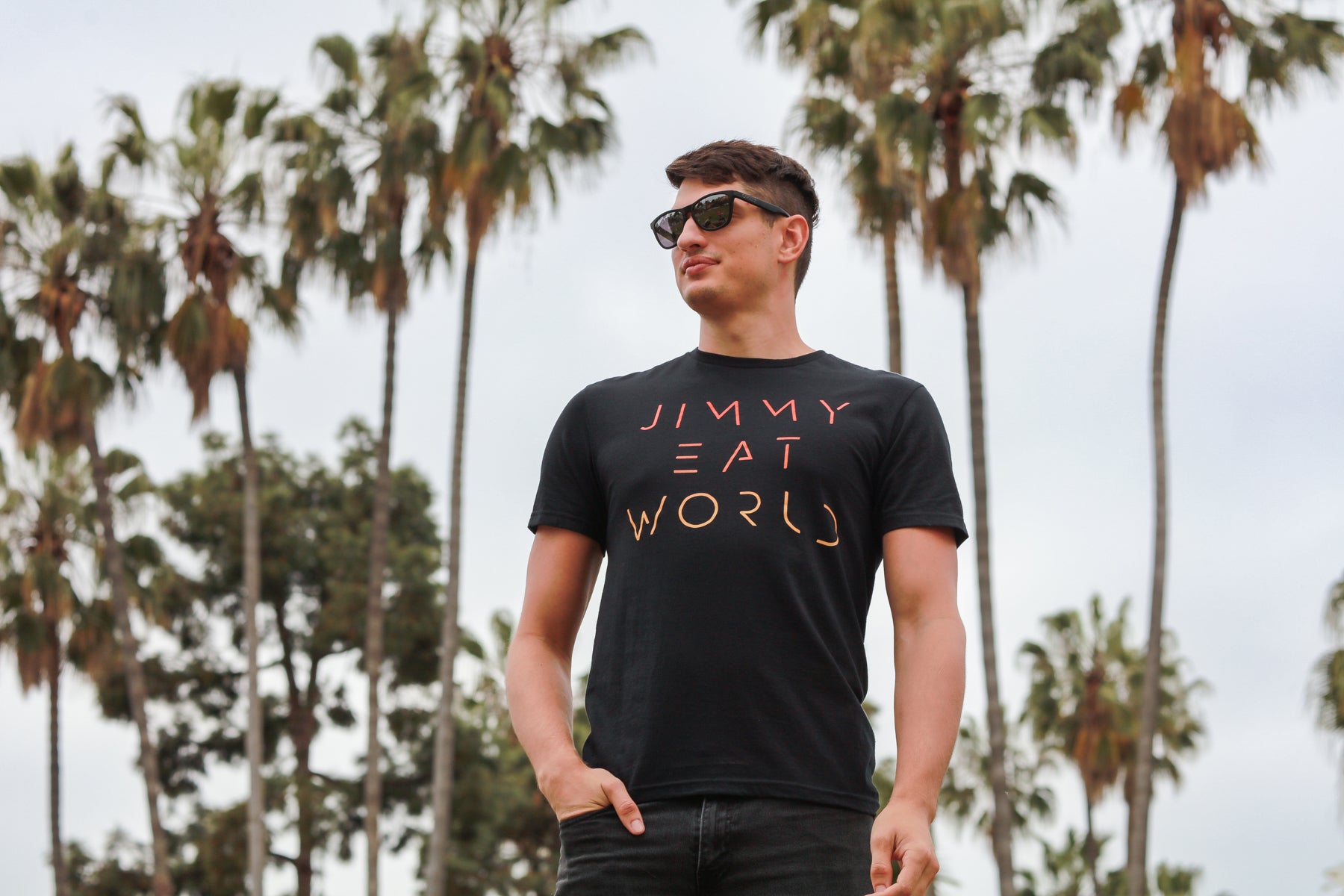 The Jimmy Eat World Futuristic Logo design, printed on a comfortable, standard-fitting black t-shirt.
